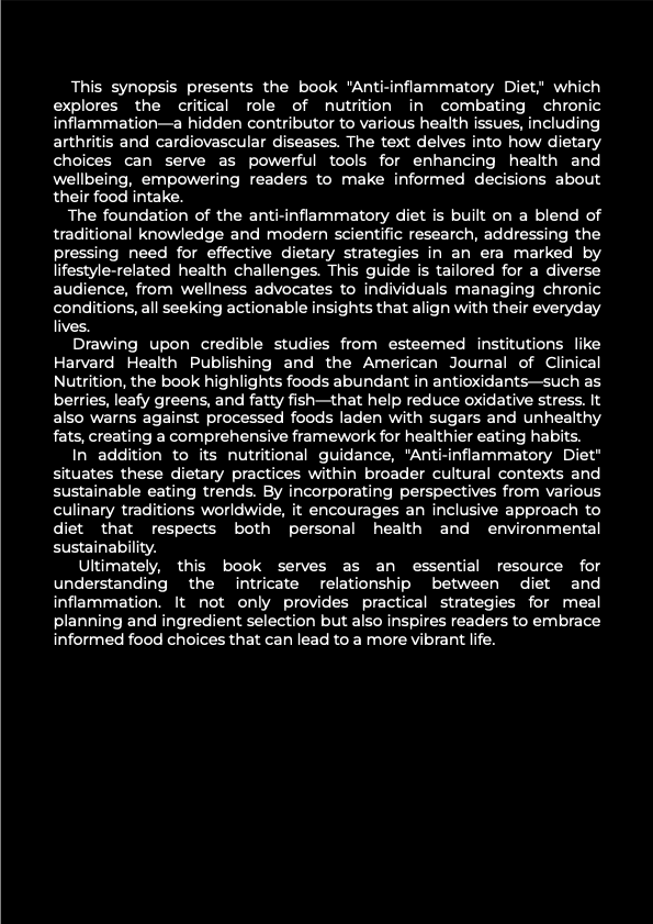 eBook: Anti-inflammatory Diet explains how smart nutrition choices can reduce chronic inflammation and boost overall health. Combining science and tradition, it highlights anti-inflammatory foods, avoids processed ones, and offers practical, sustainable meal tips.
