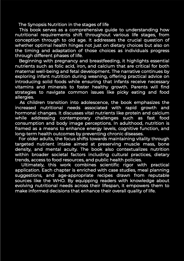 eBook: Nutrition in the Stages of Life guides readers through evolving dietary needs from pregnancy to old age. It offers science-based tips, recipes, and WHO insights to support growth, health, and vitality at every stage of life.